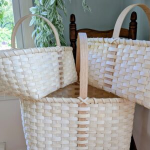 The Market Basket comes with wooden handles and is commonly used for going to the market, harvesting vegetables from your garden, or storage in your home.